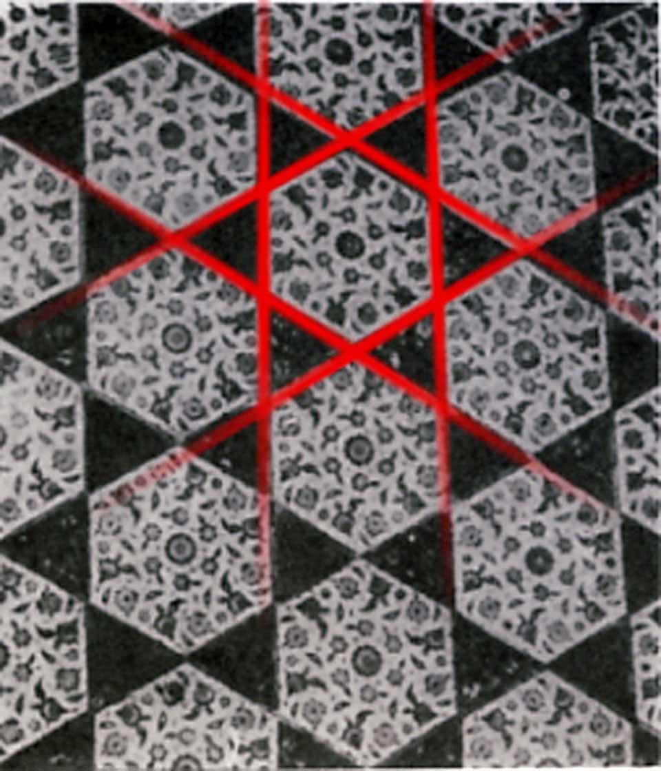 نگارههای بر پایهی شش ضلعی به لحاظ هندسی تناسباتی گنگ دارند و تنها با رسم پرگاری پیچیده میتوانند در بستر کار پیادهشوند. این پیچیدگی نتیجه رشد دانشهای هنری و هندسی هنرمندان مسلمان و نمایانگر آن میباشد. در عین حال شاید حتی کاشیهای شش ضلعی برای پوشاندن سطحهای گوناگون از کاشیهای مربعی هماندازهشان مناسبتر بودهاند و در چند بعد امکان گسترش داشته اند و ...