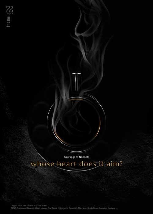 به حمدلله در چند سال قبل (حوالی سال‌های 86 تا 90) جمعی از بروبچه های خوب دانشگاه هنر و هیئت محبان اهل بیت هنر، با دقت در مساله اسرائیل و پرداخت ویژه به اون کارهای گرافیکی فاخری در هوشیارسازی مخاطب نسبت به خطر این غده سرطانی ایجاد کردند که در اون ها با پرداخت به شرکت‌ها و بنگاه های چندملیتی صهیونیستی و مورد بهره‌برداری صهیونیست سعی کردند ندای حق جهان اسلام در تبری از این رژیم فاسد رو از طریق زبان همه‌گیر هنر به گوش جهان برسونن..... ایده اولیه این کارها، اثری از طراح جوان و اهل دل ، محمد صابر شیخ رضایی بود که گروه طراحان این کارها هم تمایل داشتند تشکر ویژه ای از ایشون بکنن.