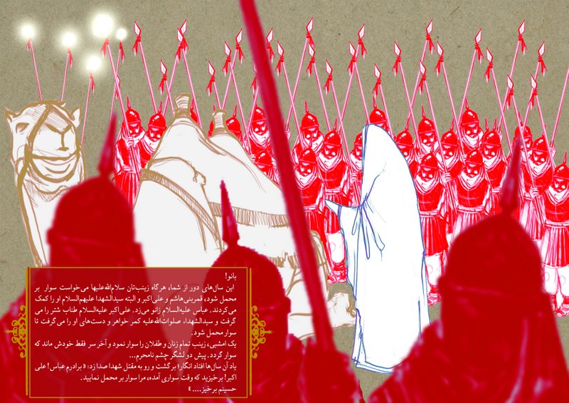 حالا چرا اینها را گفتم!؟ دوستان خوبم در هیئت هنر (هیئت محبین اهل بیت (ع) دانشجویان و دانشآموختهگان هنر) که به حق این سالها، پرانرژیترین مرجع زایش هنرهای عاشورایی کشور بوده و هست، هر ساله در آستانه برگزاری رویداد معروف سوگواره هنر و حماسه، از پوستر اعلان این سوگواره پرده برمیدارند. پیشتر نمونههای موفق و عالی از این پوستر اعلانها نیز توسط هیئت هنر عرضه شده است که اینجا یا این جا میتوانید برخی را ببینید. این پوسترها اگرچه در ترازهای مختلف هنری قابل نقد و تحلیل هستند اما هر کدام نمونهای قابل بحث و عالی از طراحی پوستر عاشورایی به شمار میآیند.